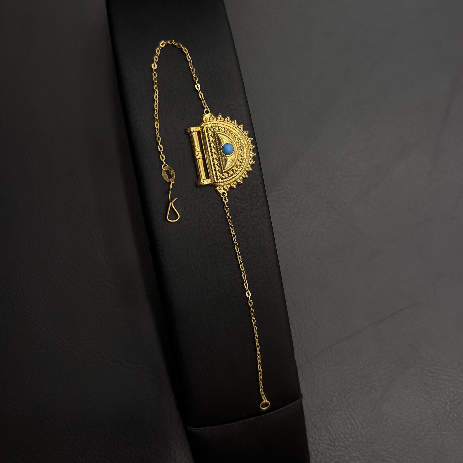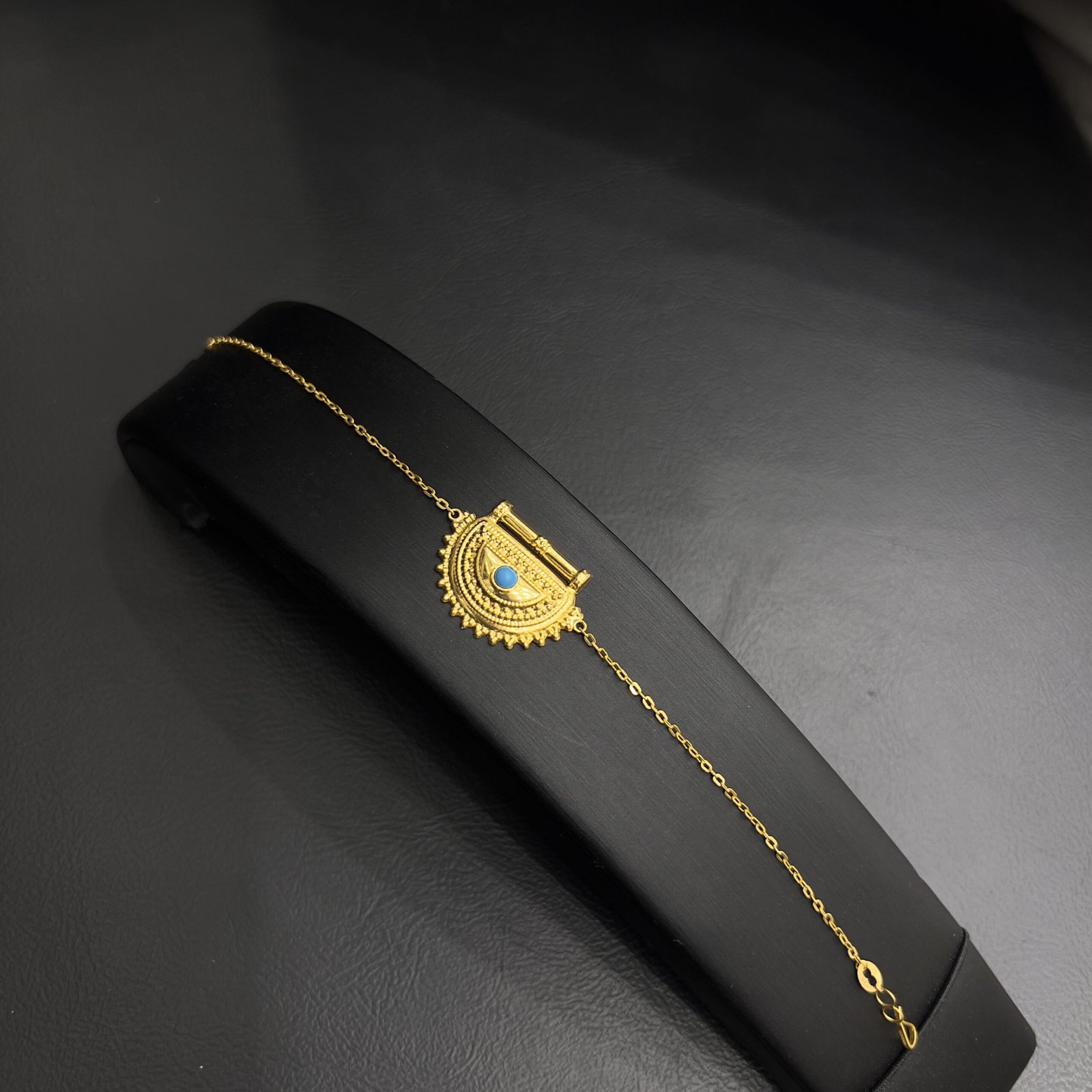 أسواره الدانه مصنوعة بدقة من الذهب عيار 21، والذي يعتبر رمزًا للجودة والثقة في عالم المجوهرات. إن استخدام هذا العيار يضمن للقطعة بريقًا ولمعانًا يدوم طويلاً، كما يعبر عن الذوق الرفيع والقدرة على اختيار الأفضل. تصميمها الهندسي المتقن يضيف قيمة إضافية ويمثل استثماراً مميزاً يليق بذوقك الخاص.