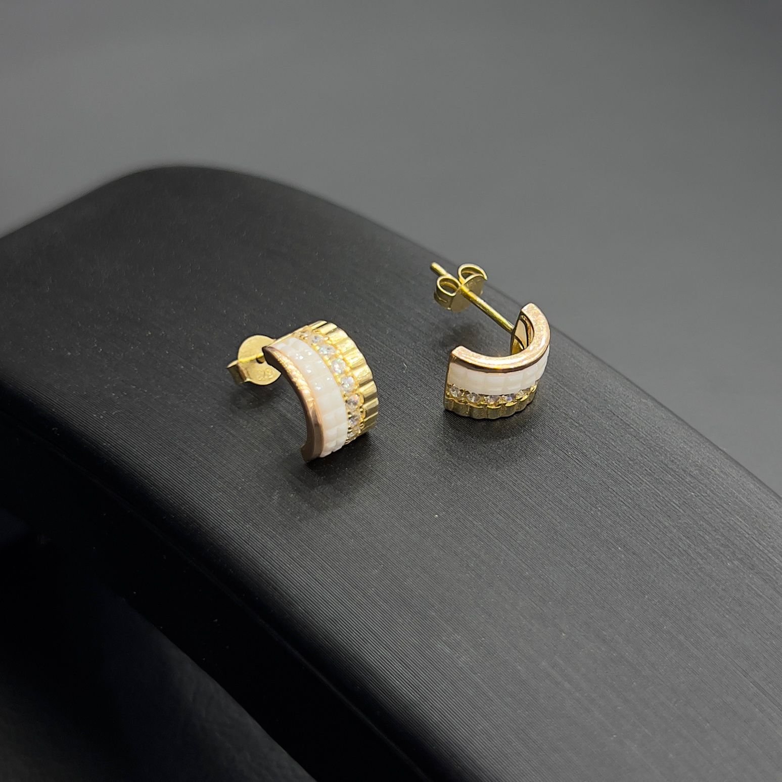 حلق باشرون عيار 18 هو الخيار المثالي لمن يبحث عن قطعة مجوهرات تجمع بين الجمال والجودة. يتميز هذا الحلق بتصميمه الفريد والدقيق الذي يبرز مظهره الراقي ويكمل أي إطلالة بطريقة ذات طابع مميز وأنيق.
