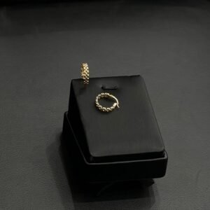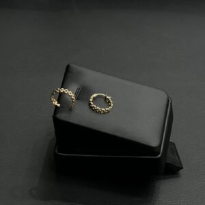 الحلق مصنوع بالكامل من الذهب عيار 18، مما يضمن متانته وجماله لفترة طويلة. ليس فقط أنه قطعة أنيقة، ولكنه أيضًا يمثل استثمارًا في جودة الذهب الحقيقي. يمكن الاعتماد عليه للحفاظ على شكله ولمعانه مع الاستخدام اليومي.