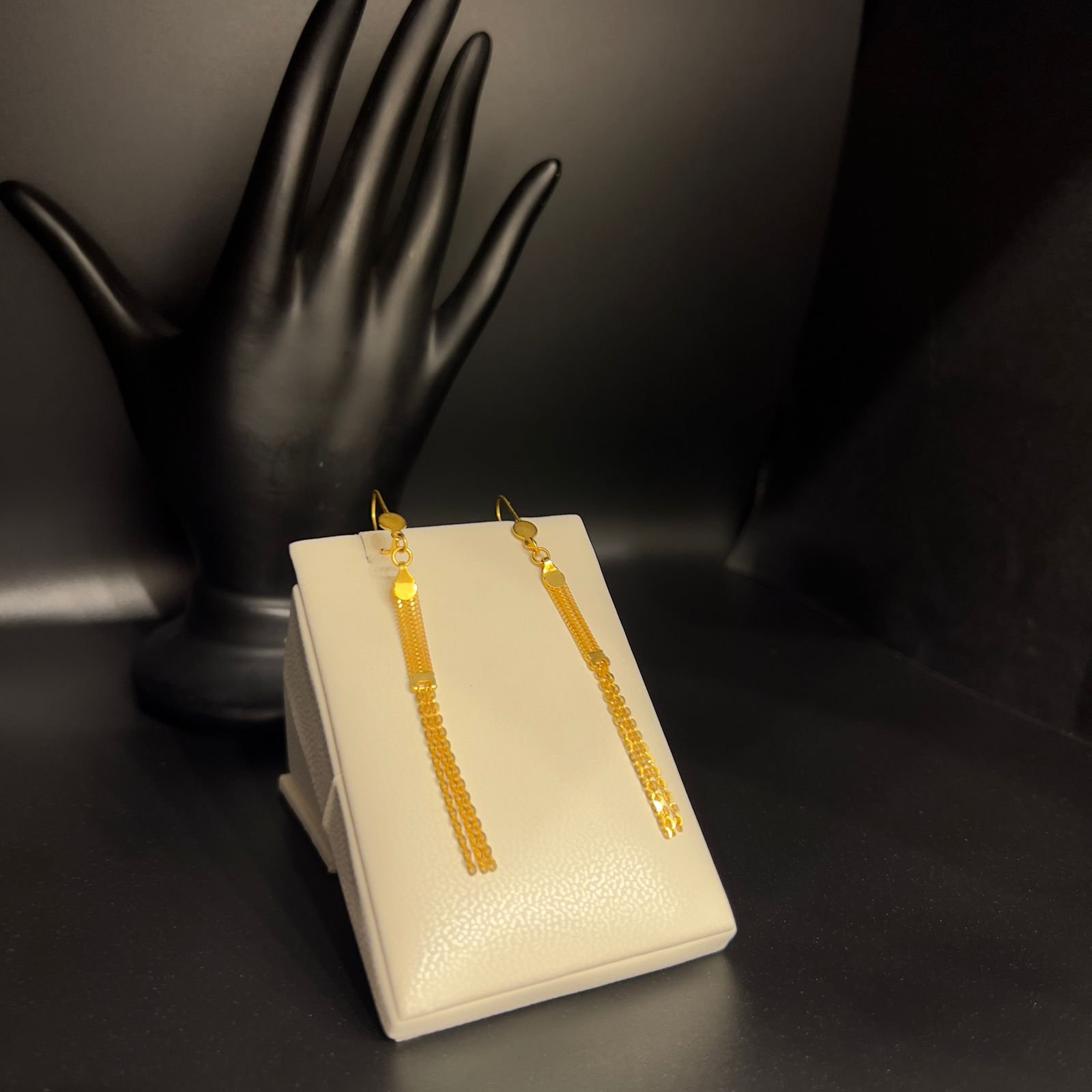 يتميز هذا الحلق بجودة الذهب عيار 21، والذي يعد من أكثر أنواع الذهب شهرة وطلبًا، حيث يتميز بمظهر غني وصلابة مناسبة للاستخدام اليومي أو المناسبات الخاصة. تصميم المجدولة يضيف بُعدًا فنيًا فريدًا يزيد من جاذبية القطعة، مما يجعلها اختيارًا مثاليًا لكل من يبحث عن الكمال في التفاصيل.