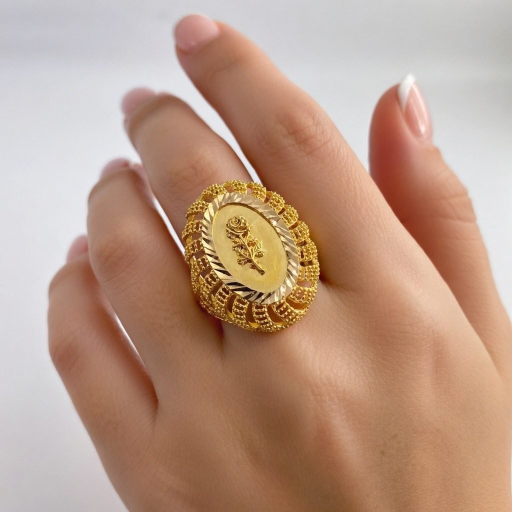 خاتم الوردة المطرزة ذهب عيار21k✨
