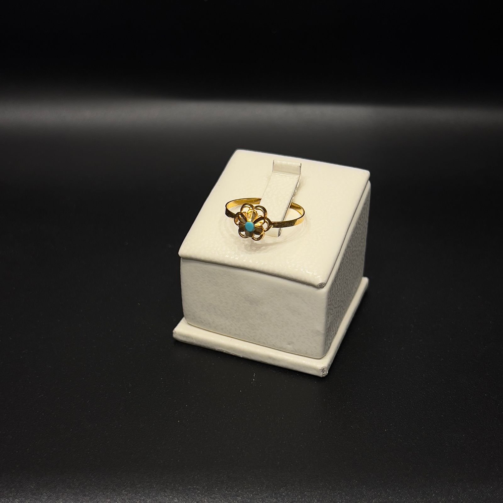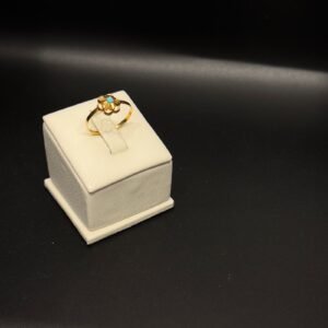 يُصنع هذا الخاتم بدقة من الذهب عيار 21، المعروف بجودته العالية ومتانته الجذابة. يضفي الحجر الفيروزي لونًا منعشًا وفريدًا، ليعطي لمسة طبيعية ومميزة لأي إطلالة. سواء كنت ترتديه كمجوهرات يومية أو لإضفاء البهجة على المناسبات الخاصة، فإن هذا الخاتم سيبقى دائمًا محط الأنظار.