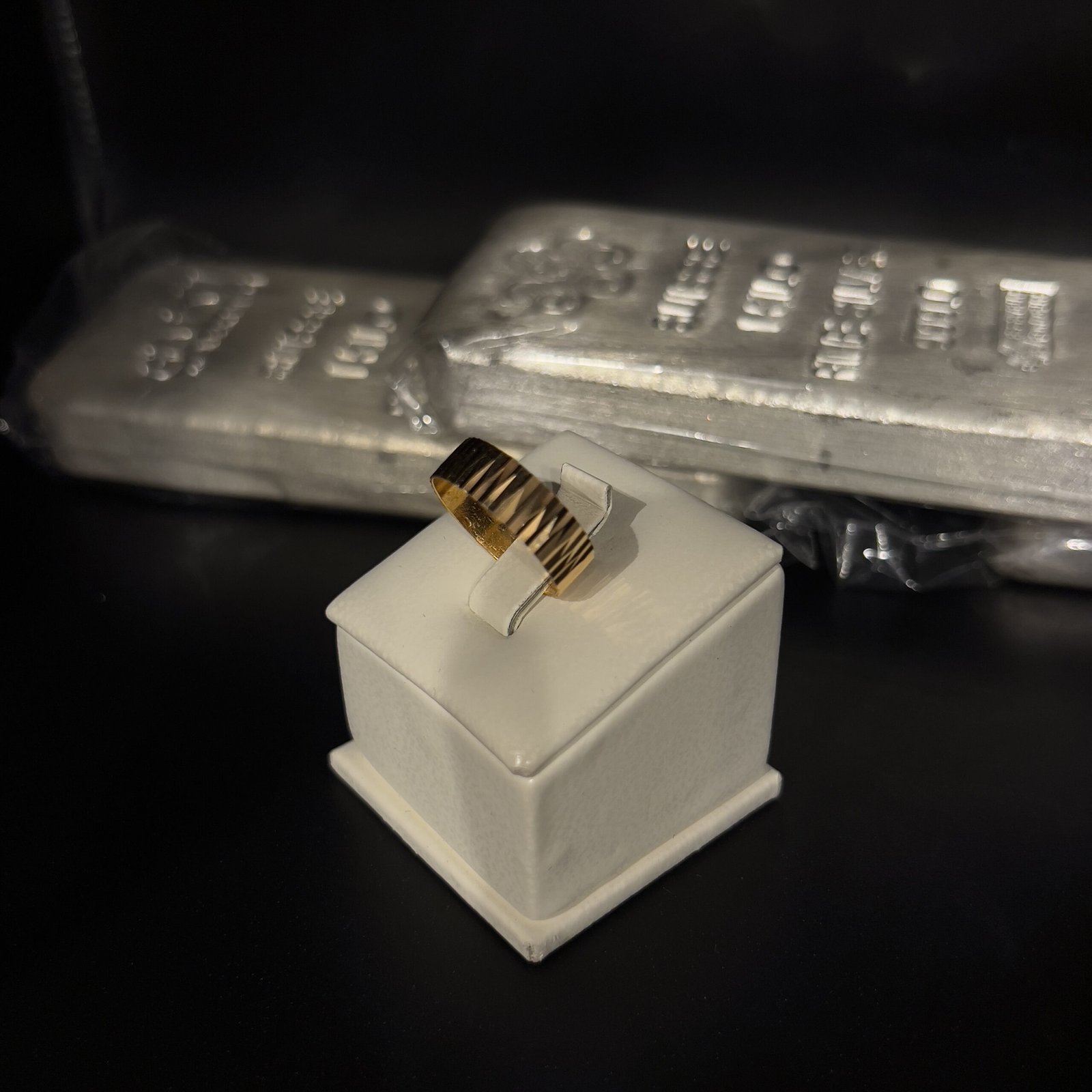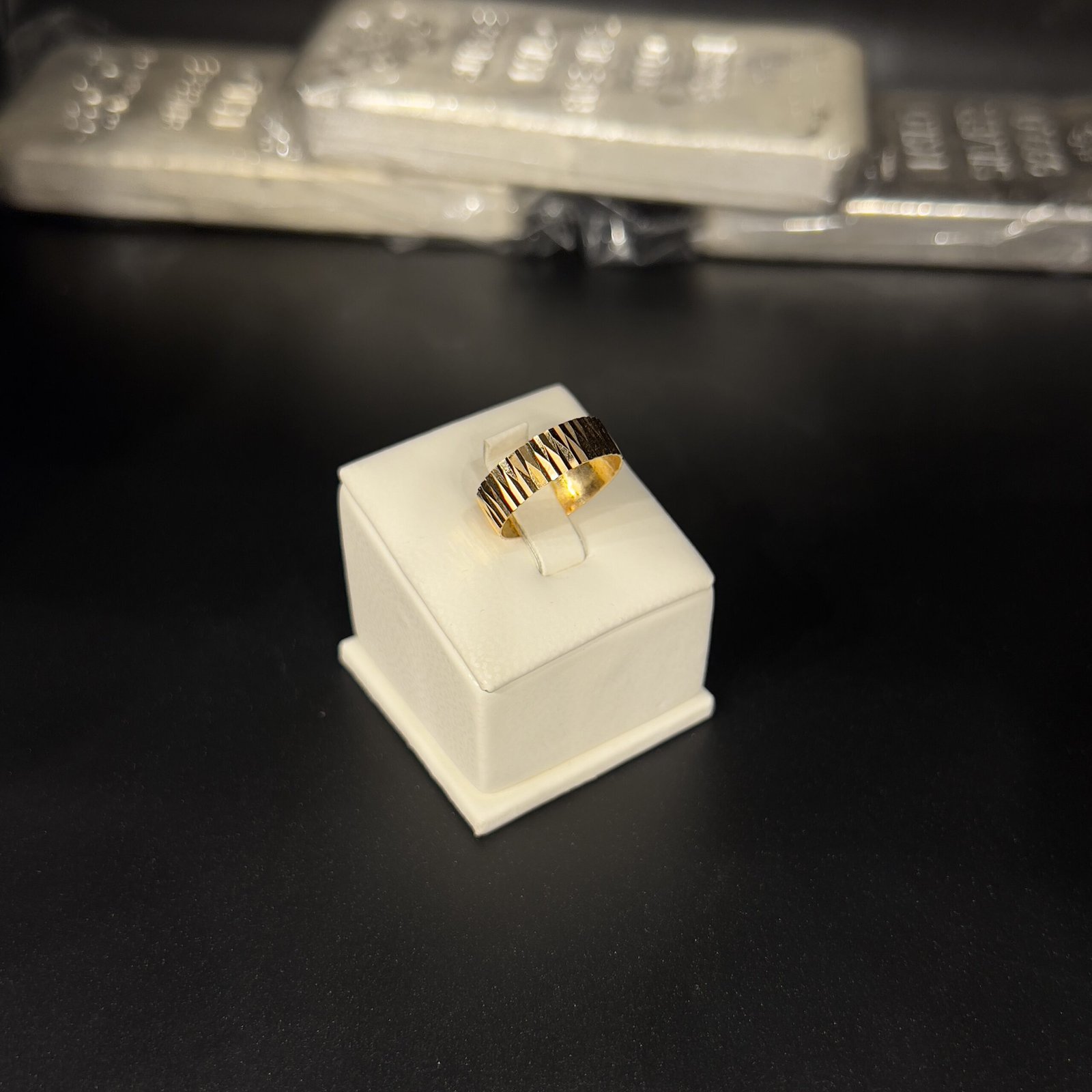 تم تصنيع الدبلة باستخدام الذهب عيار 21، الذي يعتبر من أعلى عيارات الذهب جودة. بوزن 2.11 جرام، ستشعر بخفة وزنها التي توفر الراحة دون المساس بجماليتها. كل قطعة تمر بعمليات تشذيب وتنقيح تُظهر التألق والجمال بشكل استثنائي، مما يجعلها قطعة تدوم طويلاً وتحتفظ برونقها مع مرور الوقت.