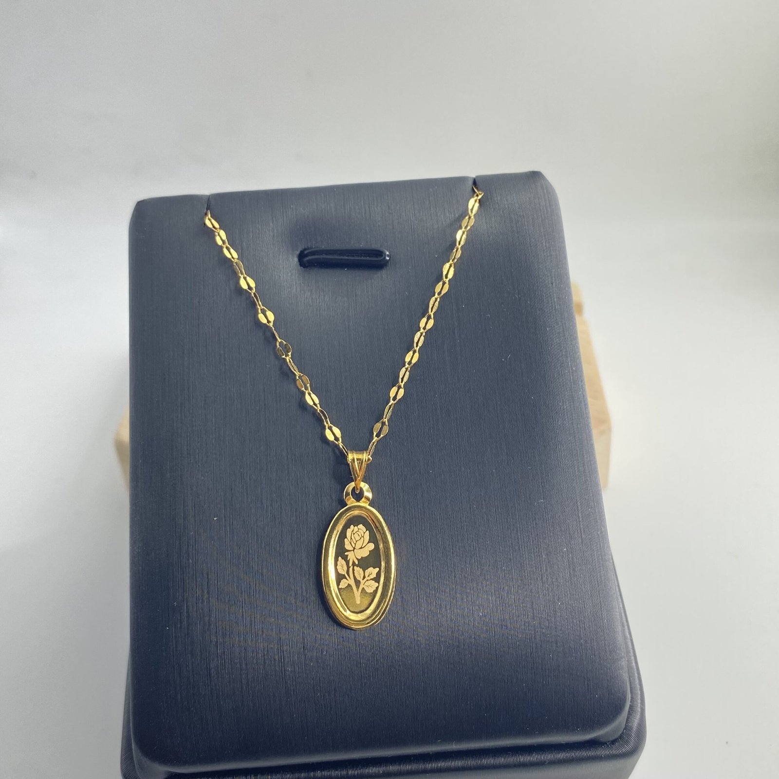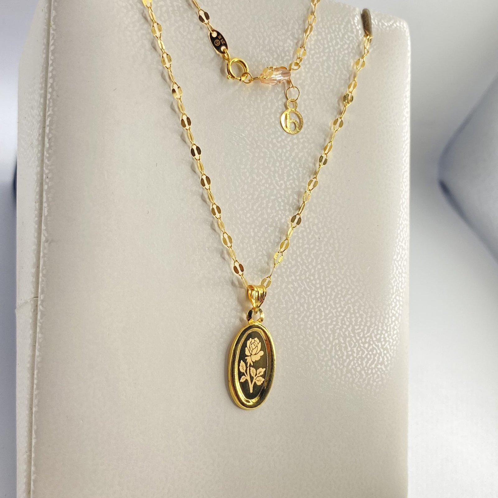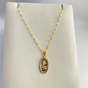 عقد الوردة مميز جداً وأنيق ذو مظهر رائع وذو سلسلة براقة رائعة ذهب عيار21k وزن تقريبي1.55g