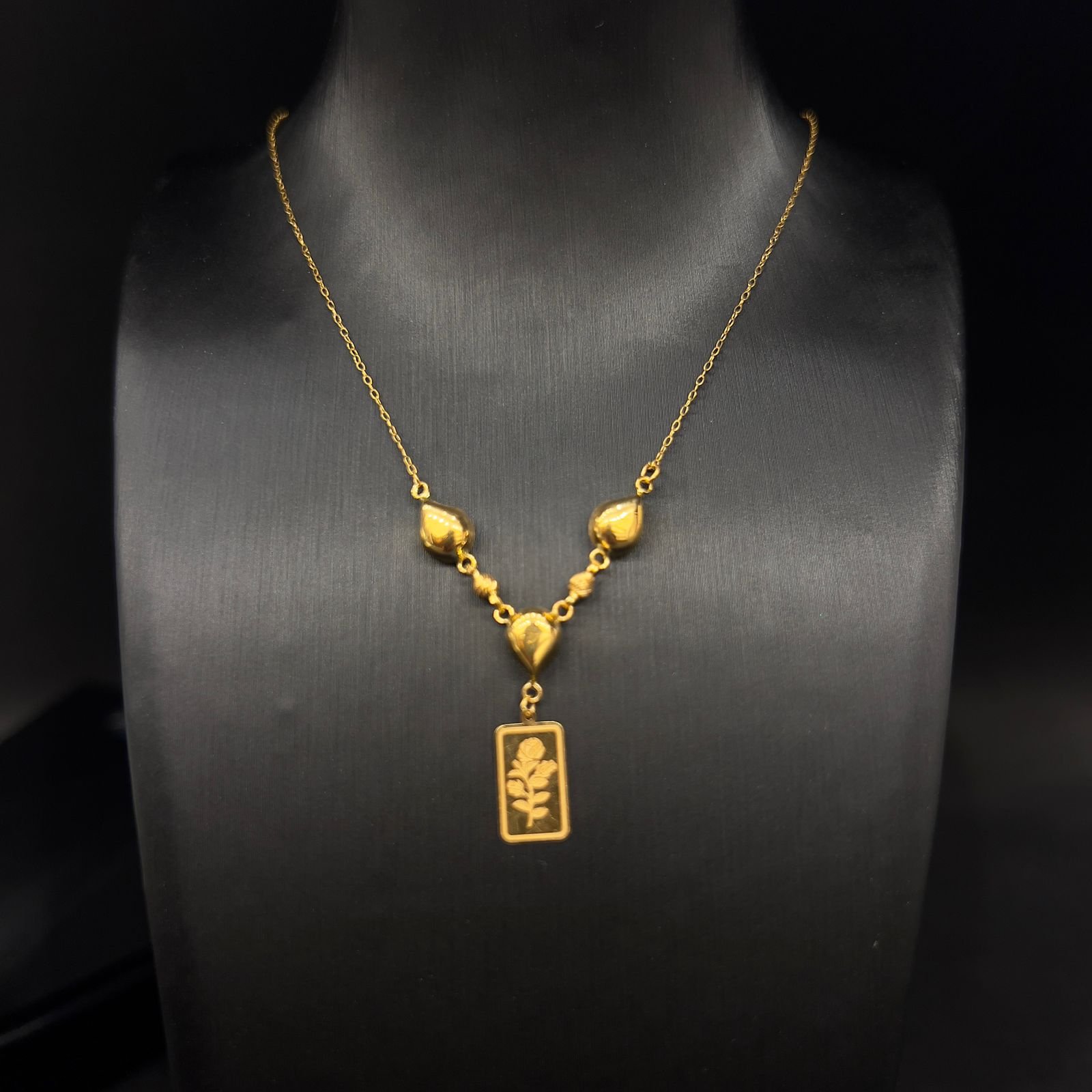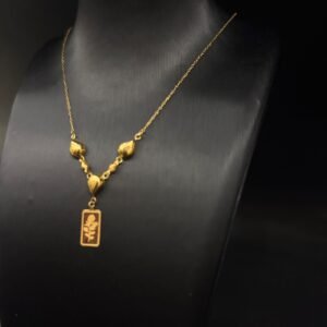 مصنوع من سبائك ذات جودة عيار 21، يضمن هذا العقد المتانة واللمعان الذي يدوم طويلًا. بفضل وزنه الخفيف البالغ 1.1 جرام، فهو مثالي للارتداء طوال اليوم براحة دون التسبب في أي إزعاج. وبفضل خاماته الممتازة، يحافظ العقد على رونقه ويظل اختيارًا رائعًا للمناسبات الهامة أو الاستخدام اليومي.