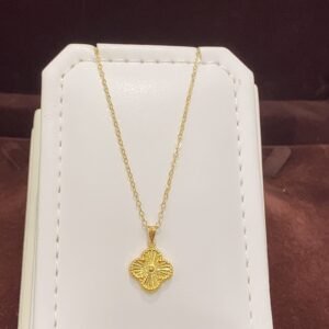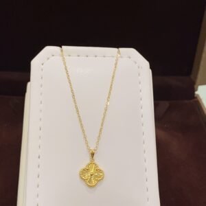 تم تصنيع هذا العقد بعناية فائقة باستخدام أفضل مواد الذهب الخالص. التفصيل الدقيق يضمن متانة وجودة تدوم لسنوات، مما يجعله استثماراً قيماً لأي مناسبة.