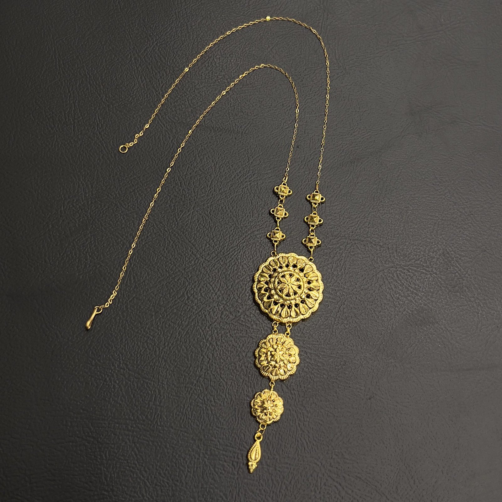 احصلي على عقد كرسي جابر الآن وتمتعي بجمال الذهب بفخامة عيار 21، الذي يعكس الأناقة في أبسط صورها.