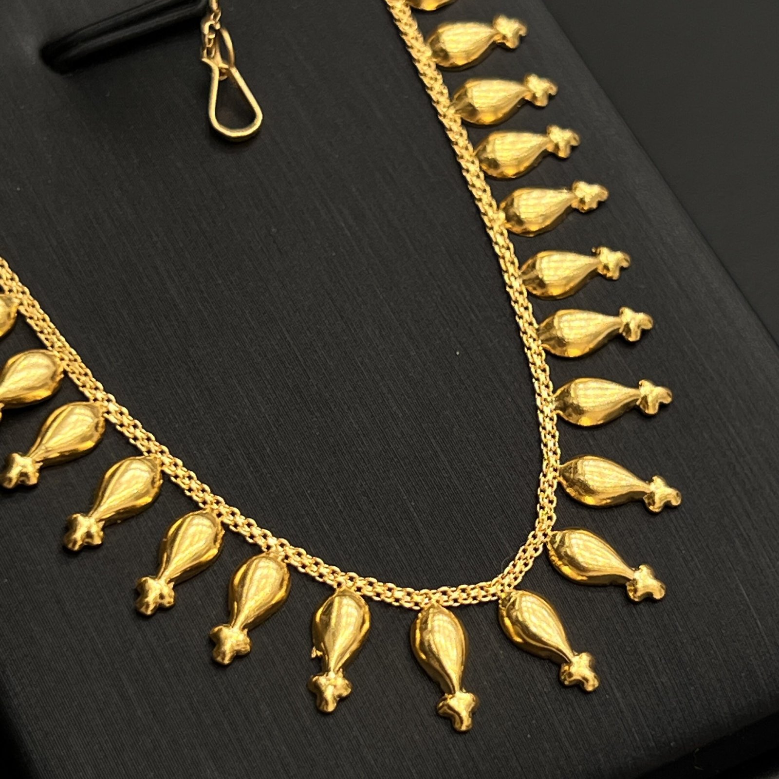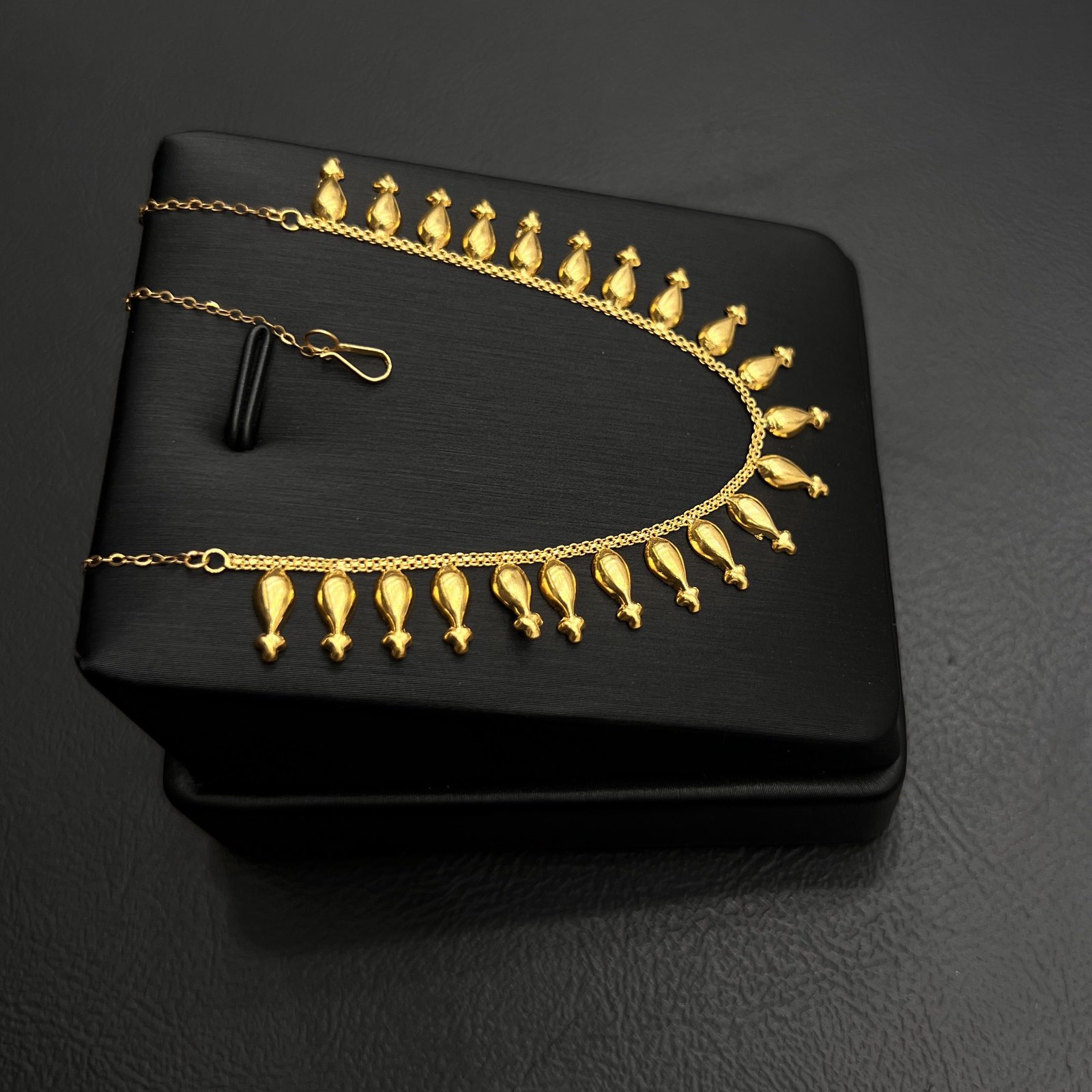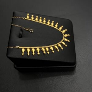 تم تصميم عقد ياسمينه بعناية فائقة باستخدام الذهب عالي الجودة عيار 21، مما يمنحه صلابة ورونقًا دائمًا. مظهره الجذاب والدقيق يبرز جمال الذهب الأصلي، ويتمتع بلمسة مشرقة وراقية تجعل من هذا العقد استثمارًا يستحق الاقتناء. كما يتميز بسهولة التكيف مع مختلف أنماط الملابس، مما يجعله خيارًا متعدد الاستخدامات لأي مناسبة.