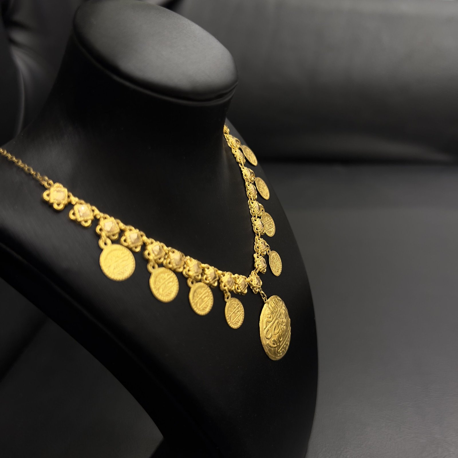 مزنط جنيهات مصنوع من ذهب عالي الجودة من عيار 21، مما يمنحه لمعانًا طبيعيًا وجاذبية لا تقاوم. يتم اختيار المعدن بعناية لضمان الصلابة والمتانة، ما يجعله مثالياً للاستخدام اليومي أو كهدية مميزة تُسعد من يتلقاها.